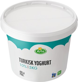 Turkisk yoghurt med krämig konsistens och mild, fyllig smak. Produkten passar perfekt som bas i kalla såser och röror, men även som ett svalkande komplement till smakrika maträtter. Turkisk yoghurt är också mycket god som dessert eller lyxigt mellanmål tillsammans med frukt och nötter. Symbolen med den blågula gräddkannan garanterar 100 procent svensk grädde. Förpackningen är anpassad för storhushåll.