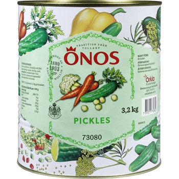 Pickles - små, utvalda & krispigt goda grönsaker i en frisk lag. Packade i Bisfenol A-fria burkar. 3,2 kg (avrunnen vikt 2 kg).
